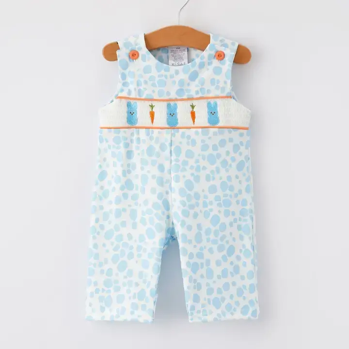 Easter Bunny Carrot Embroidery Smocking Boy's Romper