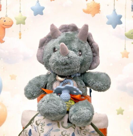 Topping this charming creation is an interactive musical dinosaur plush that adds an extra layer of wonder. Soft, cuddly, and full of personality, this keepsake companion brings gentle melody and joyful movement to baby’s world — making it more than just a gift, but a treasured first friend.
