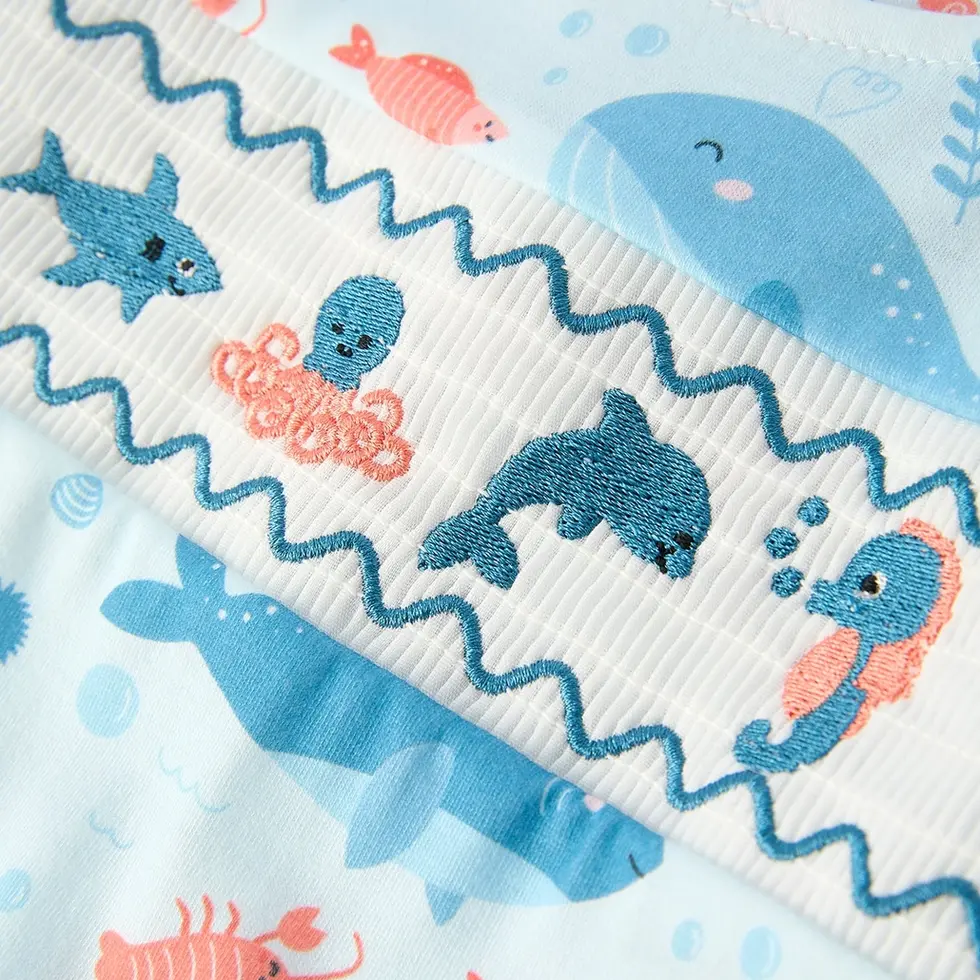 Marine Animal Smocking Embroidered Boy's Romper