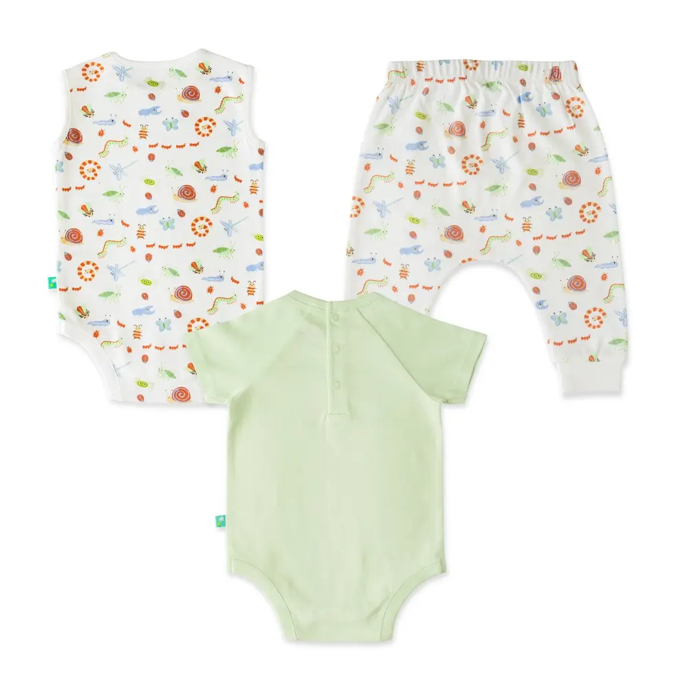 ✔ 3 Full-Length Bodysuits – A coordinated mix of cute prints and soft solids for everyday charm and variety.