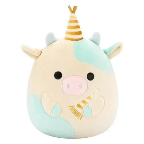 Squishmallow Birthday Plush Toy 5" Belana Cow W/Party Hat